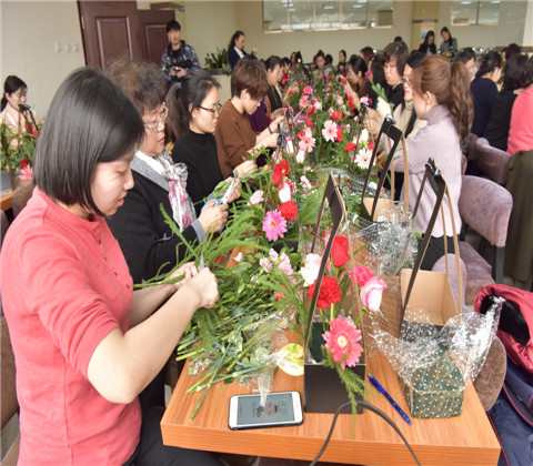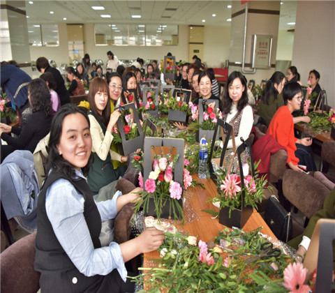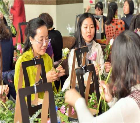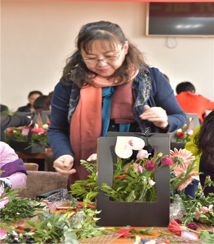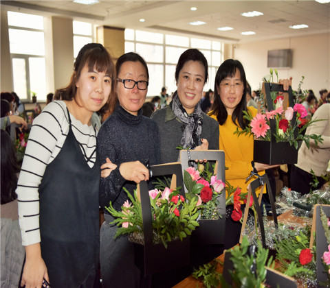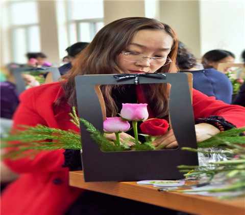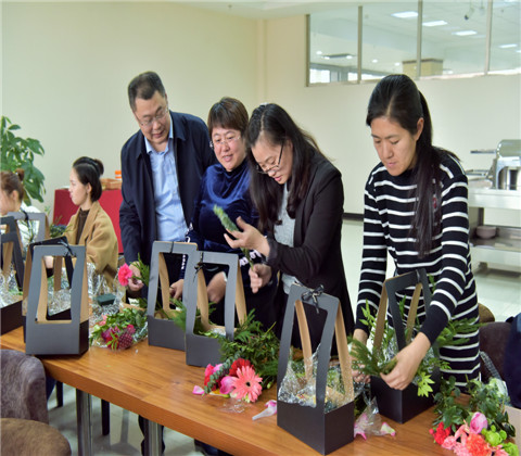 活动分为两个环节,一是由专业花艺师讲解中式插花和欧式插花技巧和要点,二是女教职工现场制作花艺作品。在动手操作环节中,现场气氛热烈,老师们相互交流,相互借鉴,创作出一件件争奇斗艳、尽显芳华的花艺作品。活动结束后,女教职工纷纷表示这样的活动很有新意,不仅学习了插花艺术的基本要素,更提升了自身的审美情趣和艺术素养。