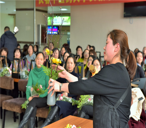 3月23日下午,女教职工插花艺术培训活动在杏林餐厅教工食堂举办。本次活动是庆祝“三八”国际劳动妇女节系列活动之一,全校160余名女教职工参加本次活动。