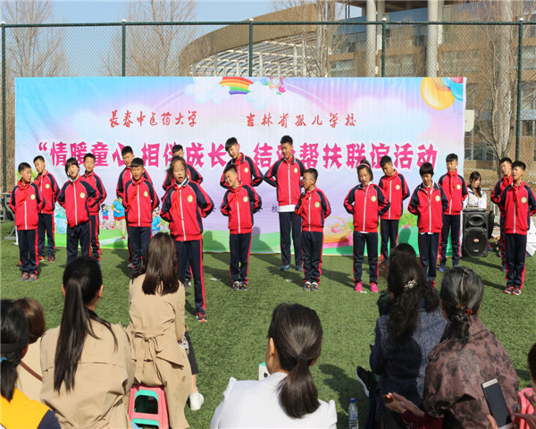 第二部分是联谊活动,长春中医药大学的学子们和吉林省孤儿学校的小朋友们都表演丰富多彩了节目,一起做趣味游戏,小朋友们对我校武术队的太极拳和八段锦表演产生浓厚的兴趣,纷纷表示要向哥哥姐姐们学习传统保健武术。联谊活动的最后一项内容是书法表演,孤儿学校的小朋友们在大哥哥大姐姐手把手帮助下书写了“福”字,送去我们浓浓的祝福,希望小朋友们健康快乐、平安幸福!