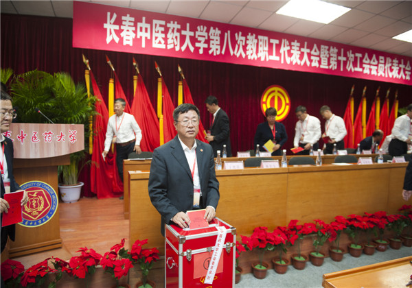 9月15日,长春中医药大学第八次教职工代表大会暨第十次工会会员代表大会在致知楼报告厅隆重召开。由始至终贯穿着高举中国特色社会主义伟大旗帜,全面贯彻党的十八大和十八届三中、四中、五中、六中全会精神,深入学习贯彻习近平总书记关于群团改革重要指示精神,按照学校党委和上级工会加强改进工会工作的要求,进一步加强教代会和工会组织自身建设,充分发挥桥梁和纽带作用,依法治校,民主管理,团结动员全校教职工,为加快建设一流中医药大学贡献力量的指导思想。会上,全体代表听取并审议了校长工作报告和第七届教代会执委会暨第九届工会委员会工作报告,选举产生了新一届教代会执委会(工会委员会)委员,经费审查委员会委员、女职工委员会委员。
