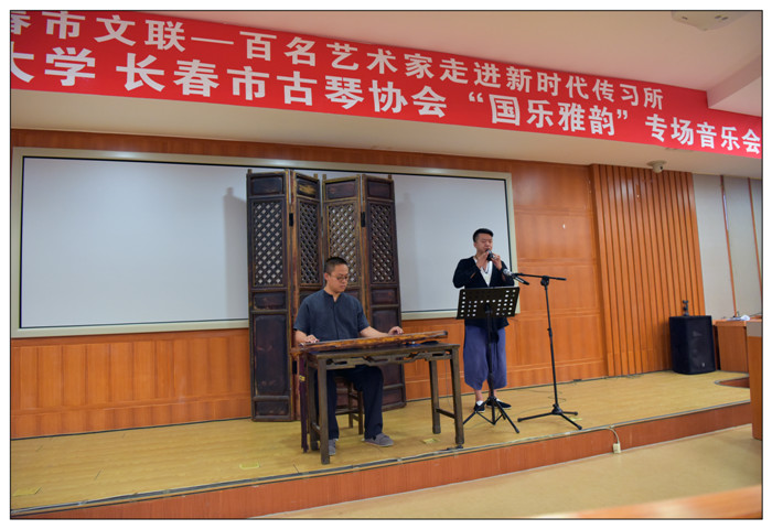 6月20日,校妇委会、工会、校团委、党委宣传部在国际学术报告厅举办了长春市文联——百名艺术家走进新时代传习所暨高雅艺术进校园“国乐雅韵”古琴专场音乐会。