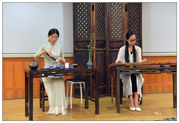 琴歌吟唱《客至》拉开了专场音乐会的序幕,以古琴独奏、琴箫合奏、琴勋合奏、古琴与手碟等表演形式先后演奏了《忆故人》、《关山月》、《梅花三弄》、《酒狂》、《唐风》等曲目。并在古琴名曲《平沙落雁》的配乐中展示了茶道行茶礼法。在刚刚过去的端午佳节里,以一曲琴埙合奏《哀郢》缅怀伟大的爱国主义诗人居原。